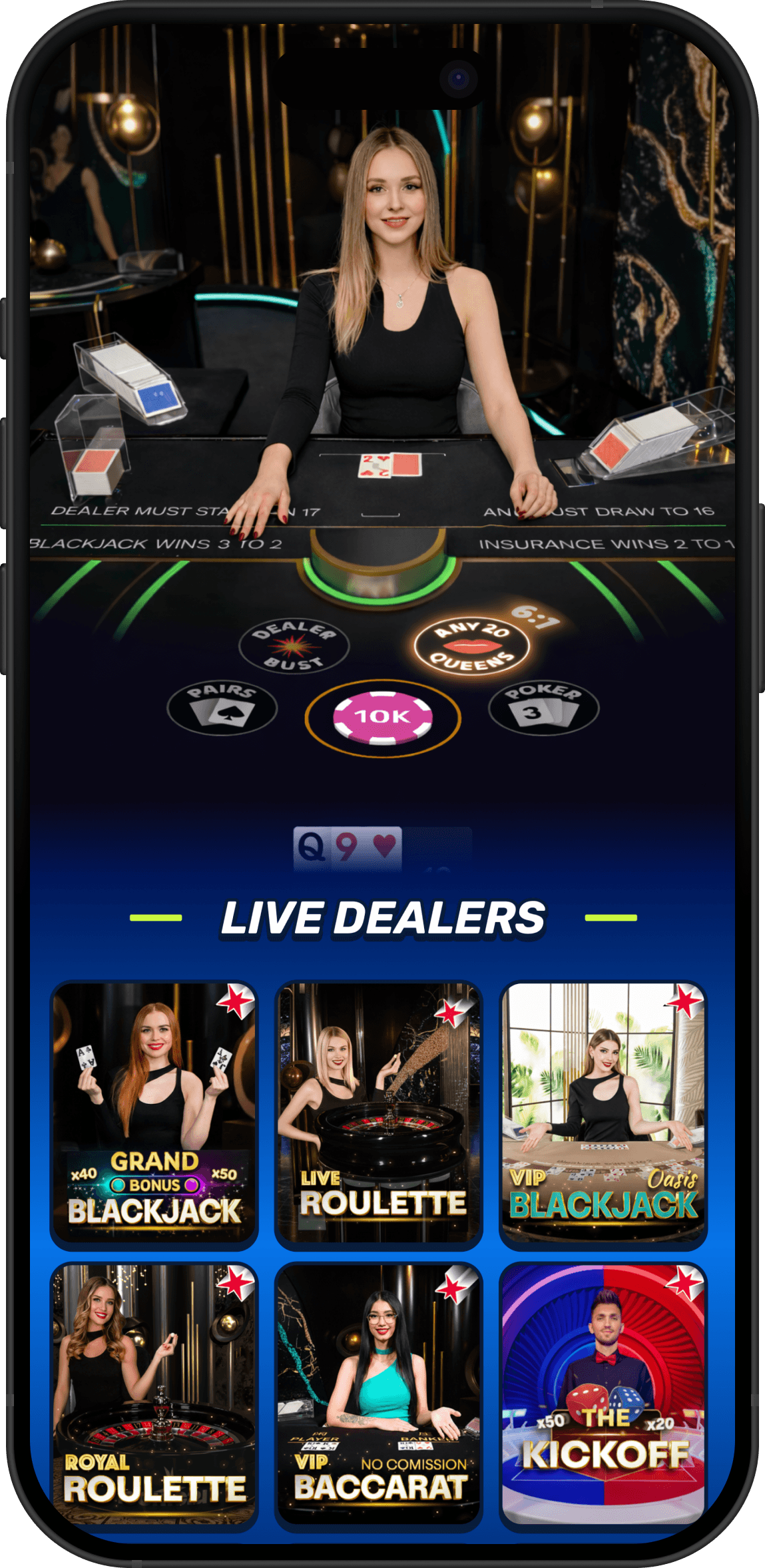 Enjoy real-time live games that bring the energy of the casino straight to you.